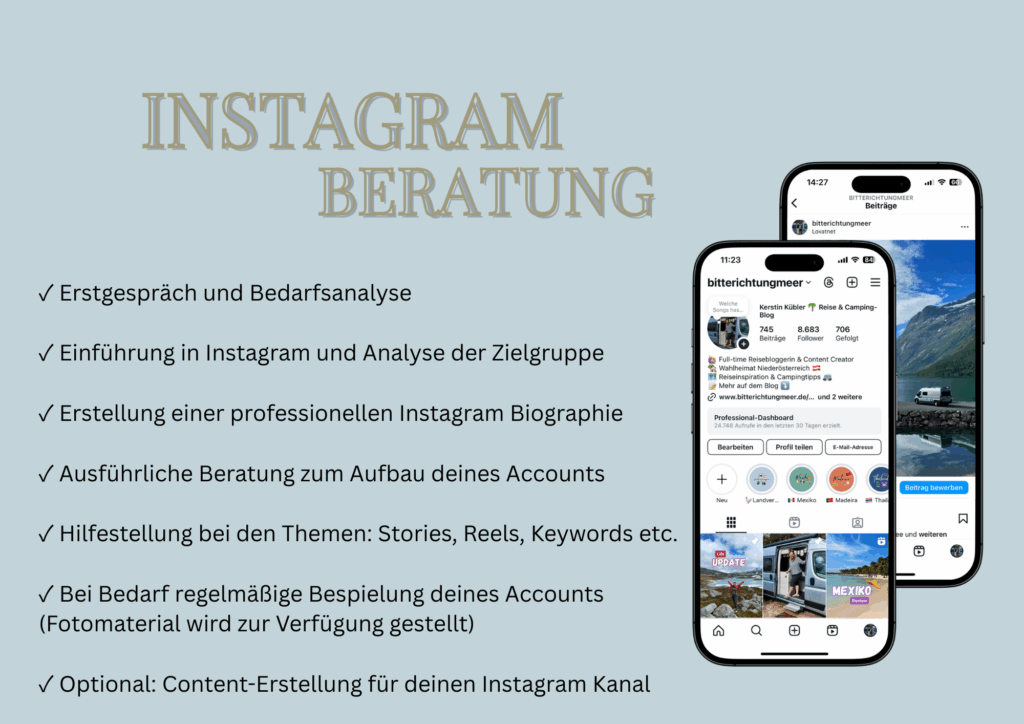 Wenn du erstmal klein einsteigen möchtest, dann biete ich dir meine Instagram-Mini Beratung an: